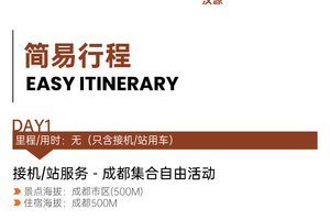 今天自行前往成都,抵达成都前后会有接机/站的师傅与您取得联系接机/站的时间。